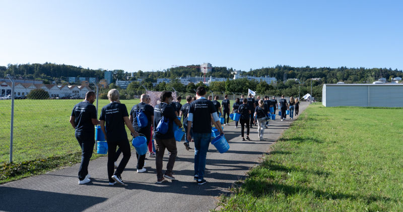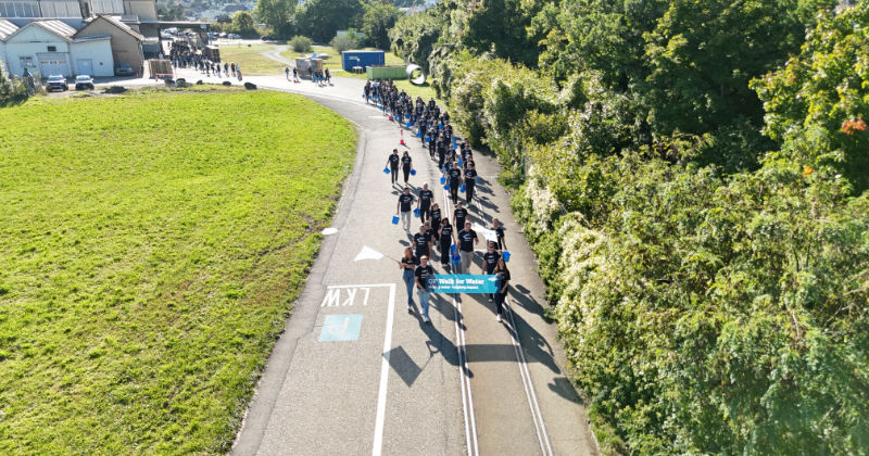 Der Walk for Water machte diese Realität für uns alle greifbar: Mit blauen Wassereimern in der Hand liefen wir gemeinsam mit rund 400 Teilnehmern die symbolischen zwei Kilometer über das Georg Fischer Gelände in Schaffhausen. Jeder Schritt erinnerte uns daran, welch mühsamen Weg viele Menschen täglich auf sich nehmen müssen – nicht für Sport oder Charity, sondern ums Überleben.